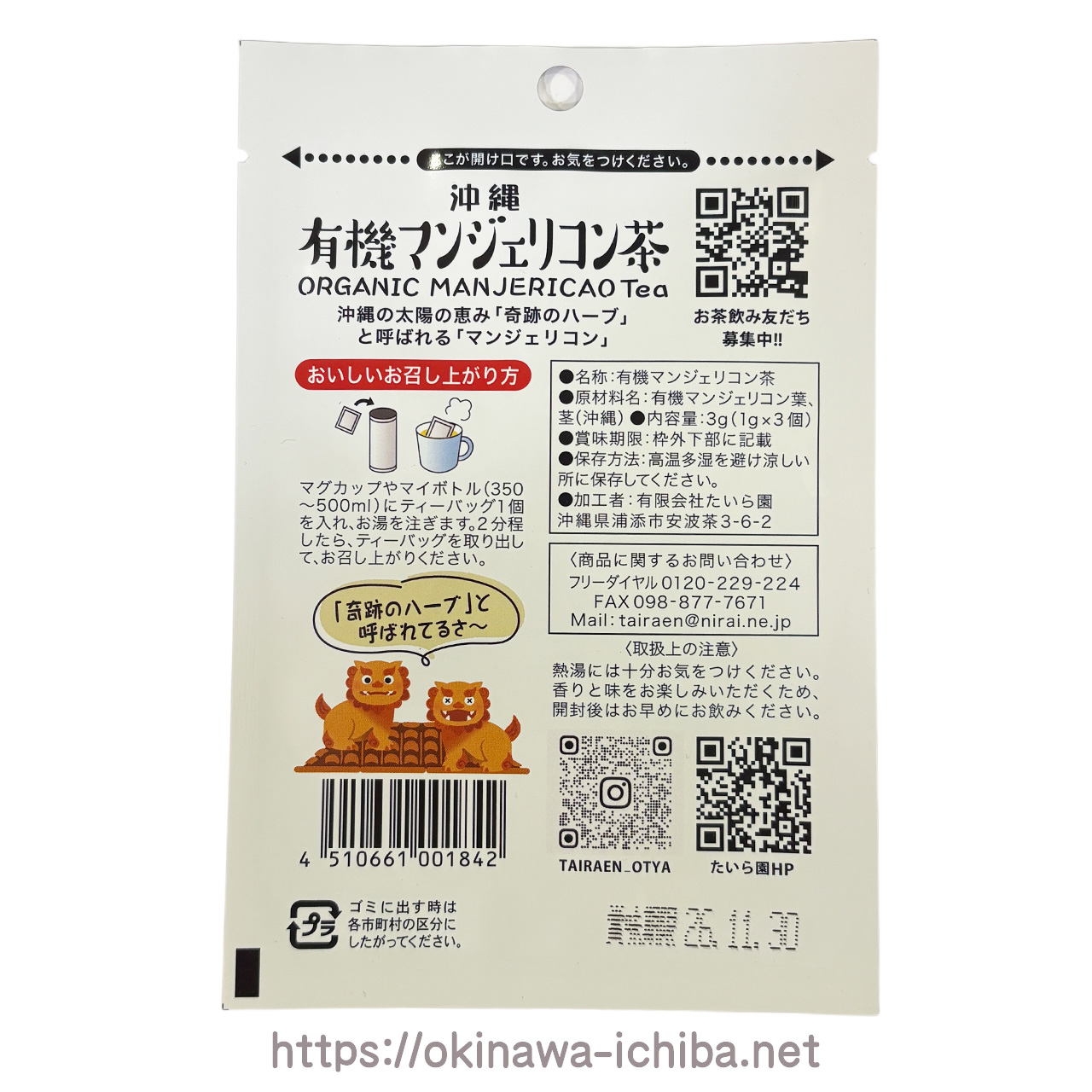 シーサー印の有機マンジェリコン茶(1g×3個)