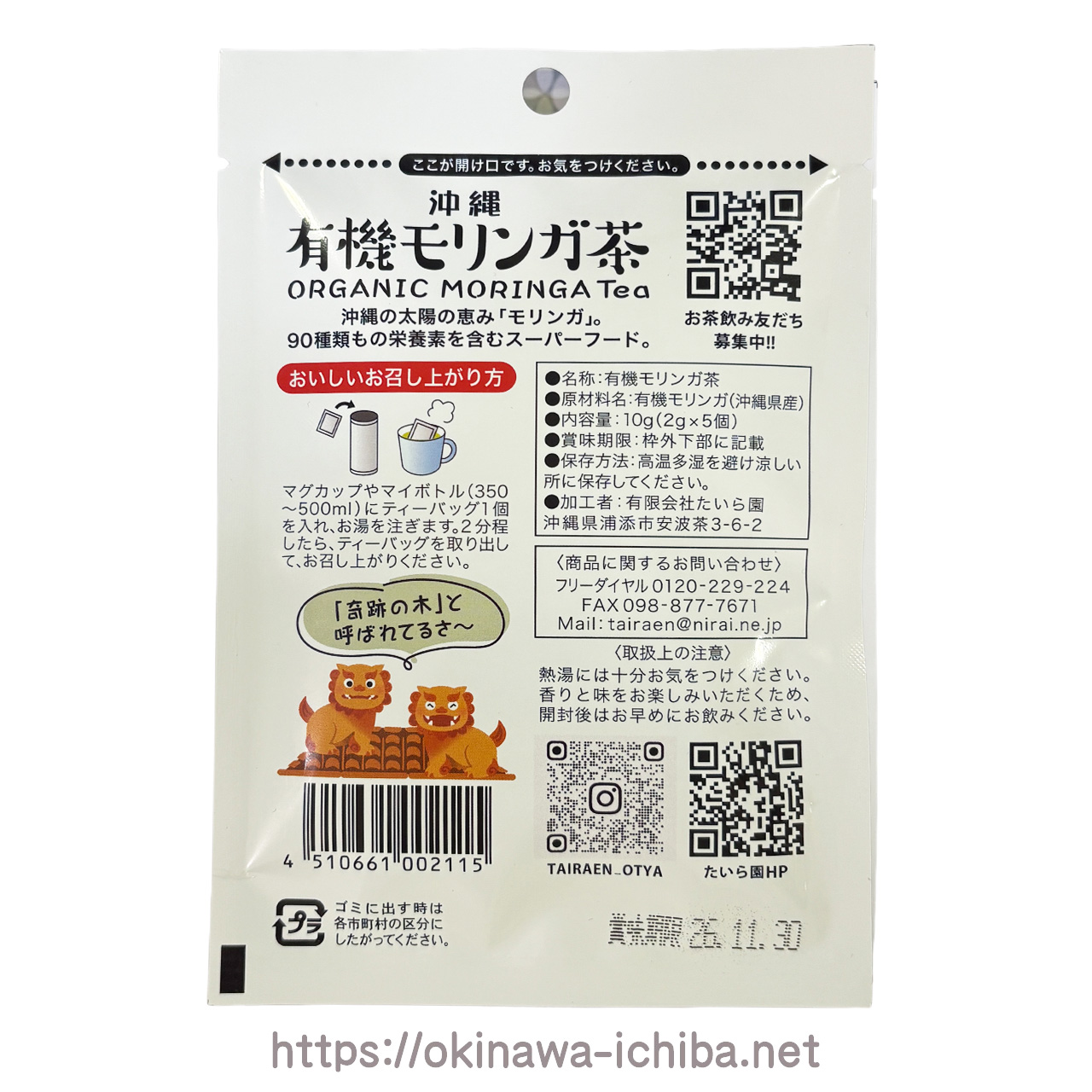 シーサー印の有機モリンガ茶(2g×5個)